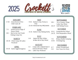 Plan to visit Crockett Lakefront RV Resort & Marina for the day and have a great time with our amenities, facilities, and on-site activities!
